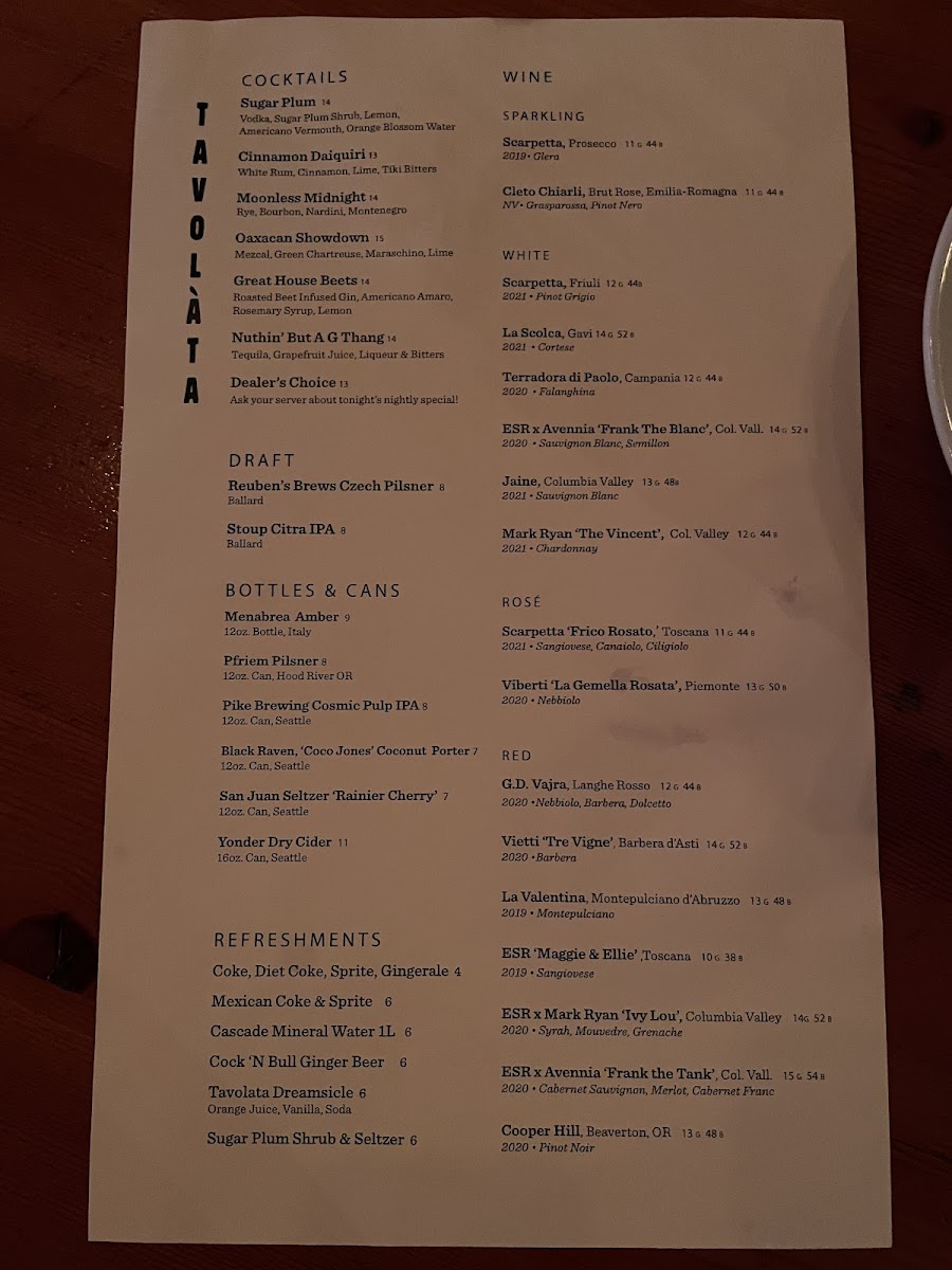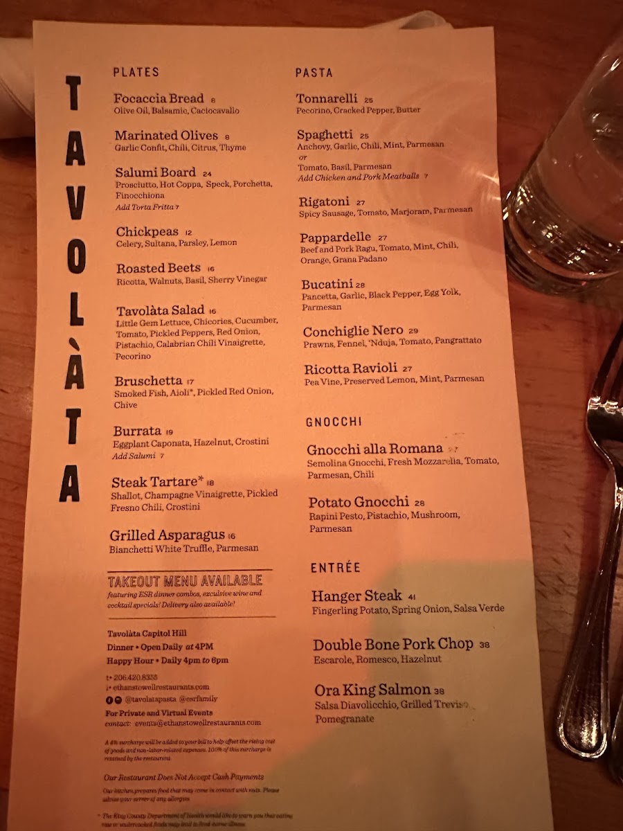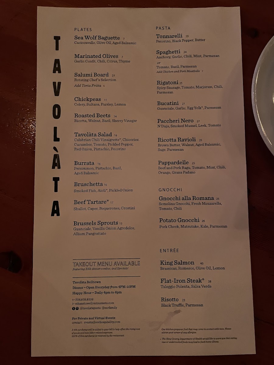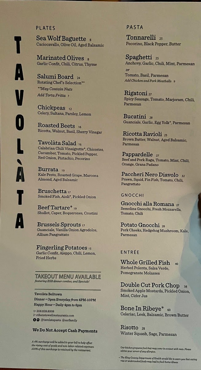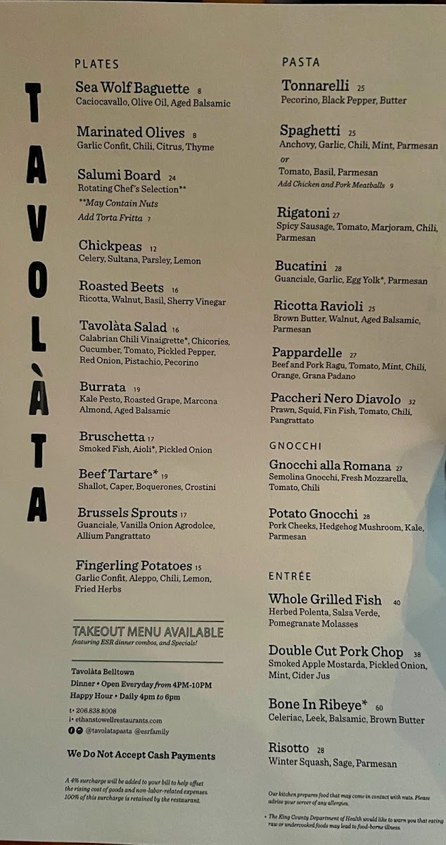 Tavolàta Belltown Menu